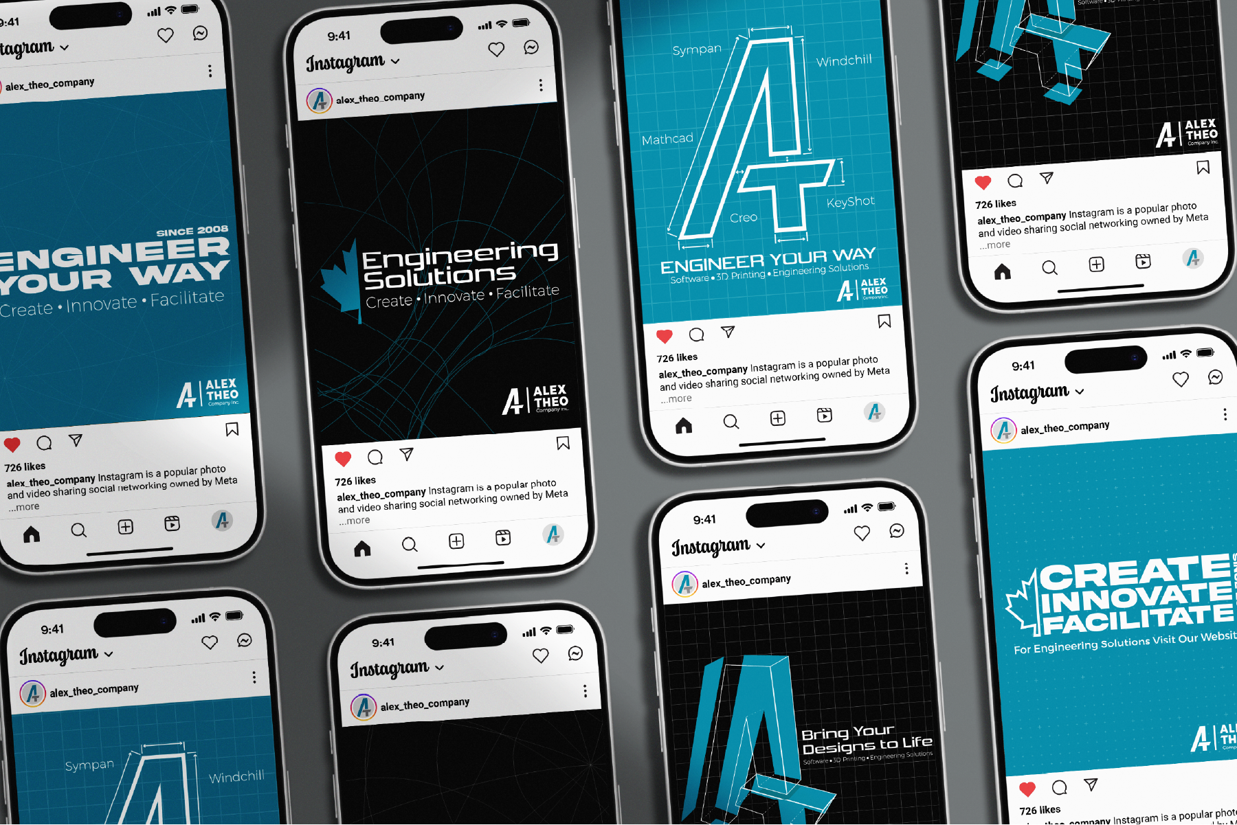 Alex Theo Company is a mechanical design and design solutions business operation since 2008 . They were seeking social media content that felt modern and engaging, while still remaining grounded in their deep design expertise. CAD software and blueprints served as key inspiration for my overall design approach, particularly in the background textures. They also hired me to design elements for their booth at ADM 2025.